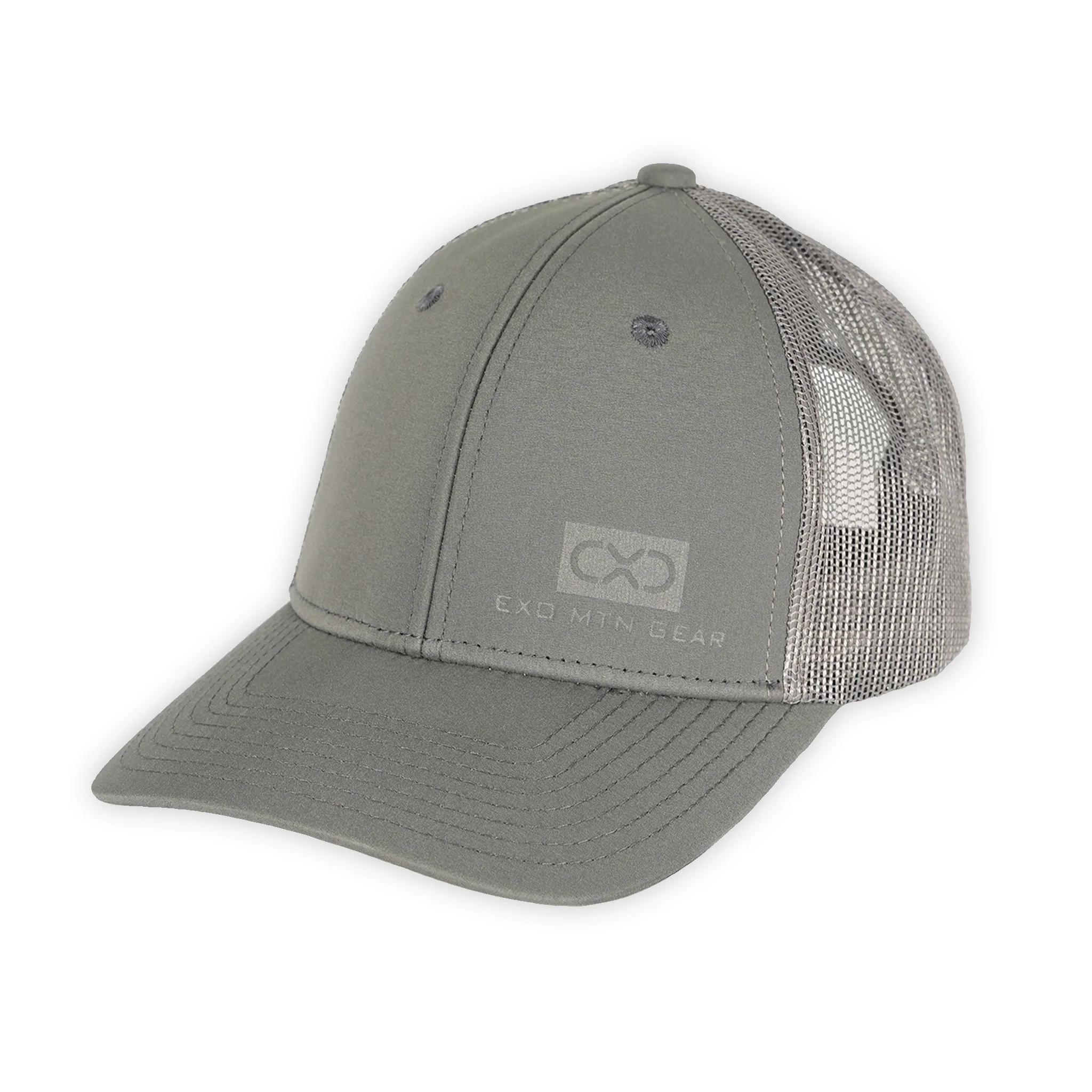 The Shadow Series of hats features a subtle embossed logo on a premium trucker cap from Outdoor Cap.